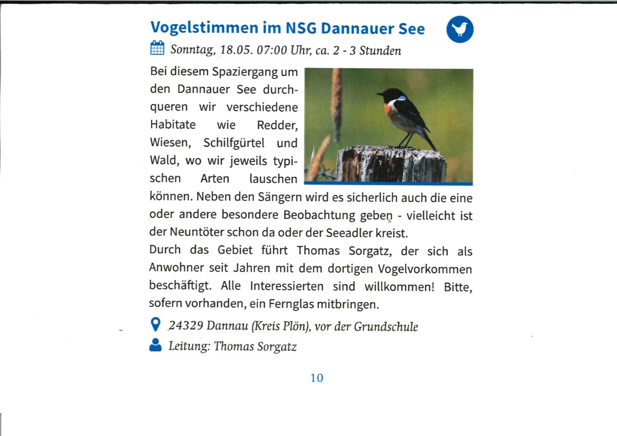 Bei diesem Spaziergang um den Dannauer See durchqueren wir verschiedene Habitate wie Redder, Wiesen, Schilfgürtel und Wald, wo wir jeweils typischen Arten lauschen können.