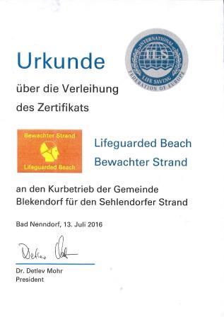Dieses Prädikat der ILSE (International Life Saving Ferderation of Europe) wurde an den Kurbetrieb der Gemeinde Blekendorf vergeben, da der Strand einer eingehenden Risikoanalyse unterzogen wurde und entsprechende Maßnahmen zur Absicherung geprüft und angepasst wurden.