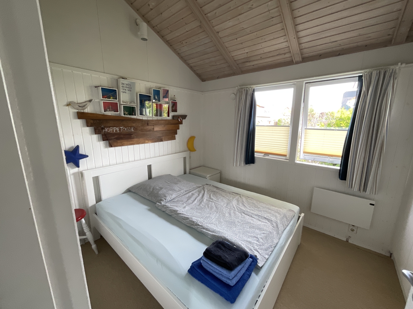 - Schlafzimmer mit Doppelbett (1,60 m breit) und Einbauschrank