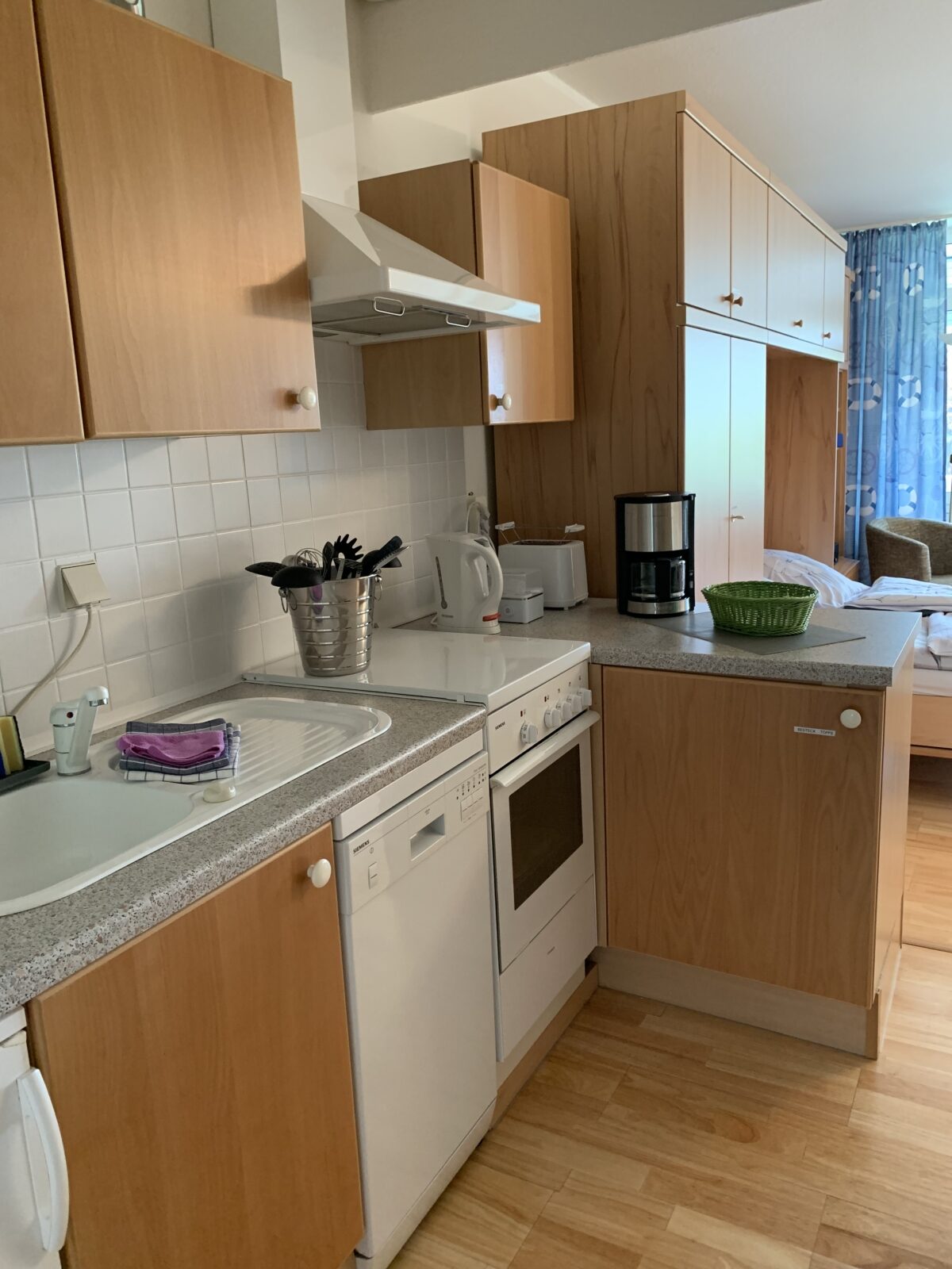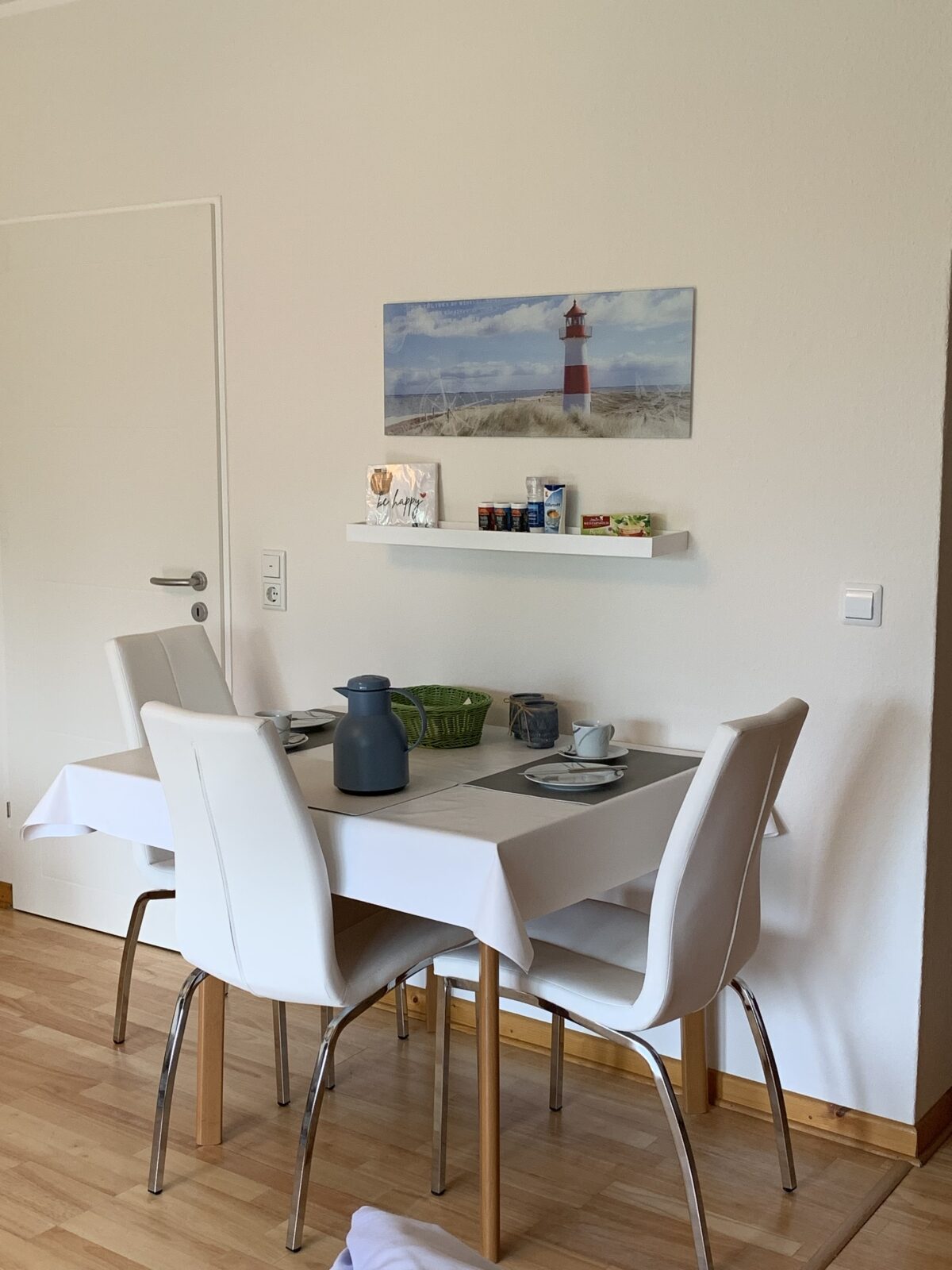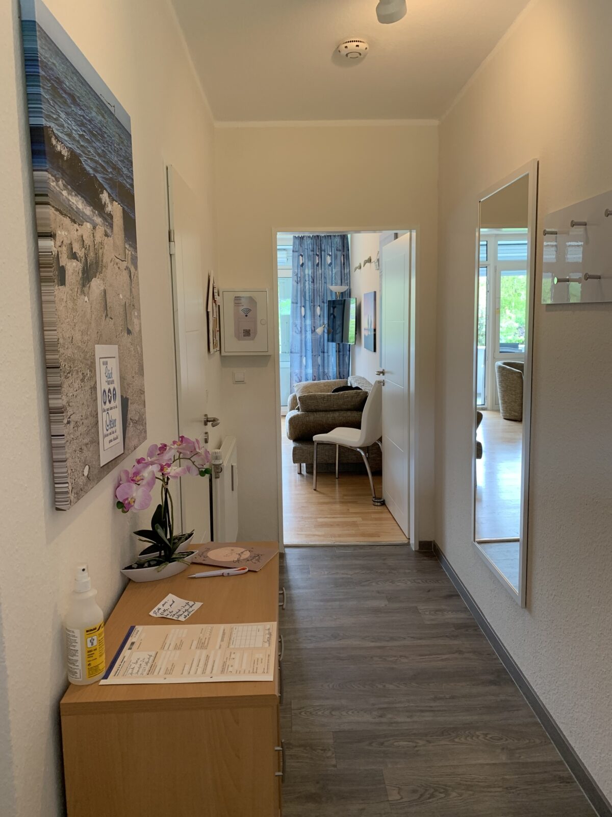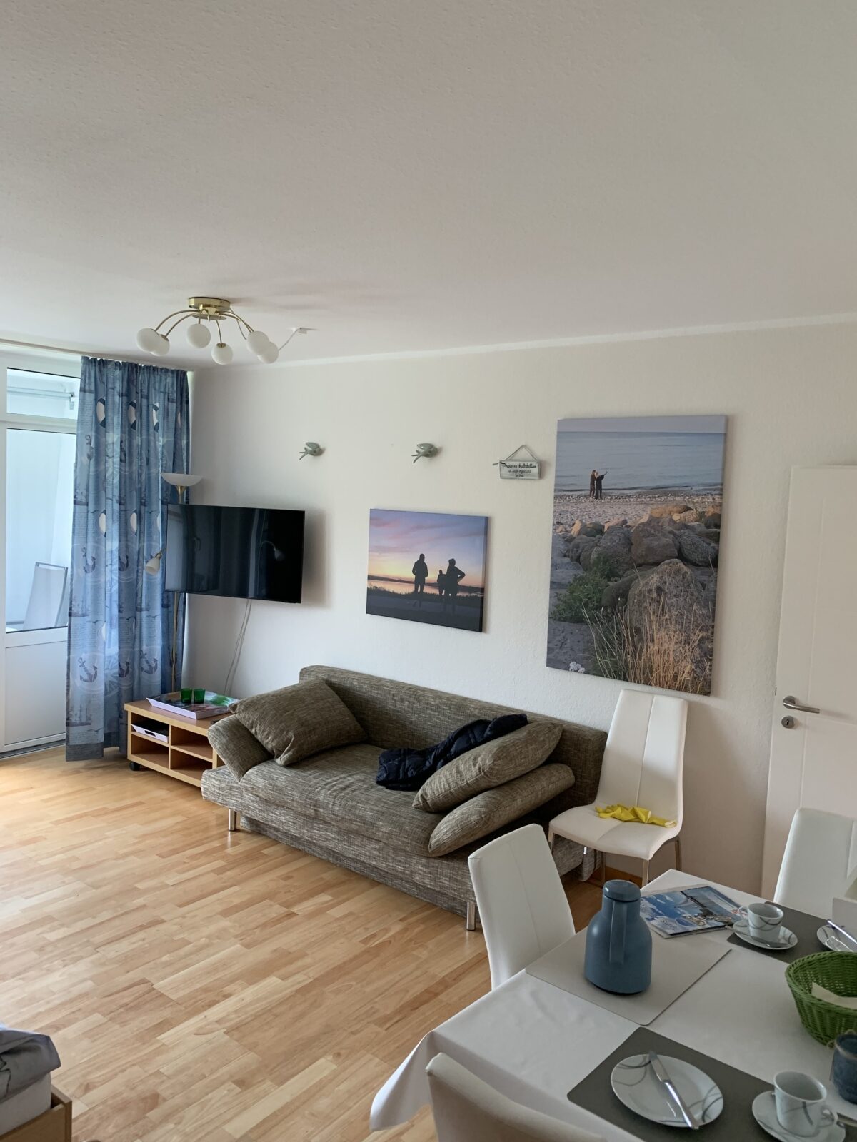 Die Ferienwohnung „IM WEISSEN HAUS“ / Maria Knoche ist ideal für 2 – 4 Personen; 50 m²; Süd-Loggia (1. OG) mit Tisch, Relax-Liegen, Stühle; 900 Meter bis zum wunderschönen Sandstrand; 1 Wohnschlafraum (Doppelbett) ,1 Etagenbett im sep. Raum, Wohn-Esszimmer mit offener Küche (Herd, Mikro, Backofen und Geschirrspüler etc.), Leseecke, neues Duschbad, WLAN-Glasfaser , Smart-TV /Technisat Digitalradio BT, CD , Hochstühlchen, 3 Fahrräder zur kostenlosen Nutzung; Parkplatz direkt am Haus (Nr.: 14 B); Liegewiese; Fitness- u. Tischtennisraum; Waschmaschinen- u. Trocknernutzung im Objekt (Gebühr); Bettwäsche, Handtücher und Service auf Wunsch (Gebühr); Endreinigung einmalig 60 € (mit Hund/Katze: 110 €); geeignet für Allergiker, Parkett.
