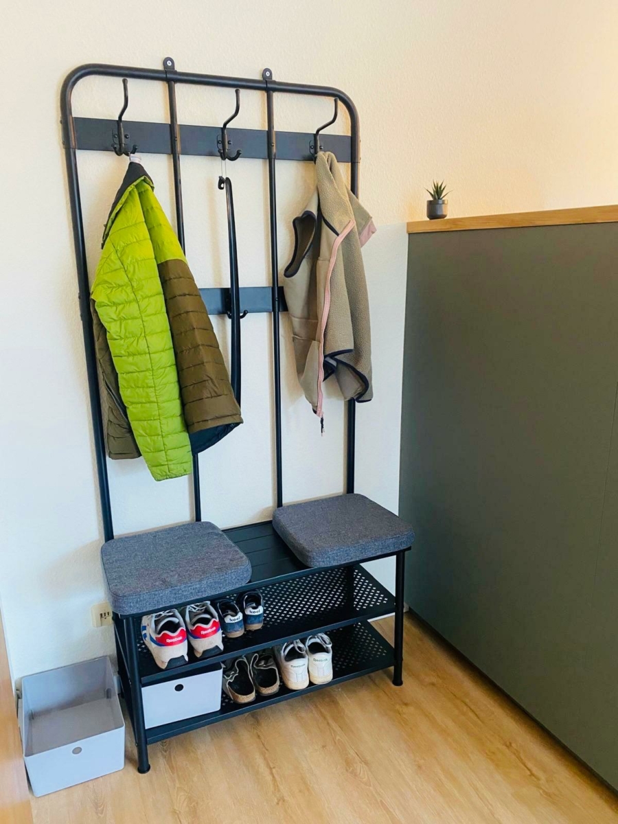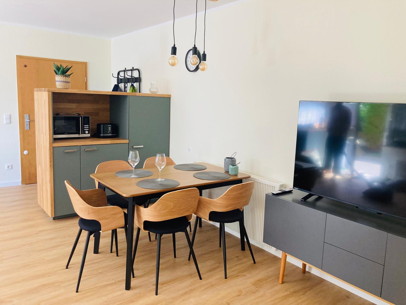 Auf 50m² erwartet Sie ein gemütliches Wohn-Esszimmer mit direktem Ausgang zur Südterrasse. Die Wohnung bietet Platz für 2 Erwachsene und bis zu 2 Kinder, mit einem komfortablen Elternschlafzimmer mit Boxspringbett und einem Kinderzimmer mit Hochbett.